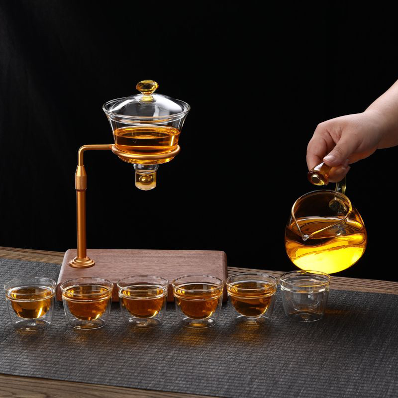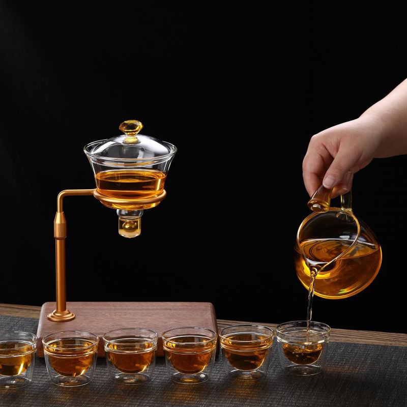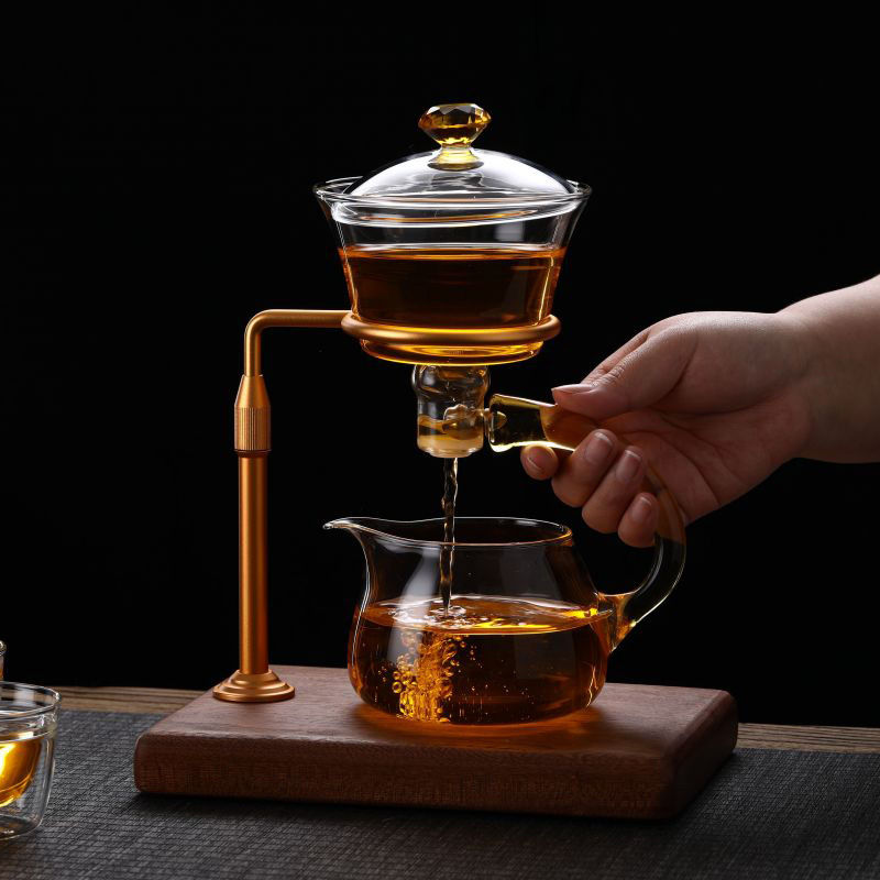 IntoWalk Tacair Tae Gloine Maighnéadach Ardchaighdeáin, ar a dtugtar tacar tae leisciúil/déantóir tae leath-uathoibríoch freisin, ní gá duit ach uisce a dhoirteadh isteach sa bhabhla tae, agus an lámh a shealbhú go díreach faoin mbabhla tae. Osclóidh an prionsabal súchán maighnéadach an poll scagaire go huathoibríoch, agus scaoilfear an tae. Sreabhadh isteach sa phota láimhe, agus ansin doirt isteach sa chupán tae. Is féidir é a úsáid go díreach. Táirge nua paitinnithe.